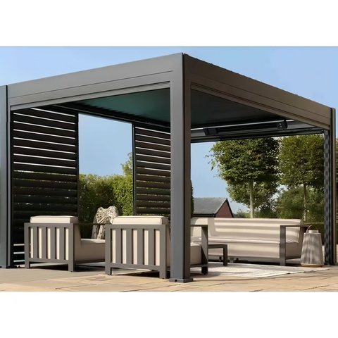 Fácil instalar ao ar livre jardim terraço telhado impermeável motorizado ajustável Gazebo Louvered alumínio Pergola