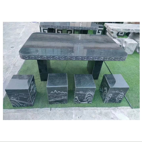 Mesa de pedra para jardim ao ar livre e mesas e cadeiras de banco